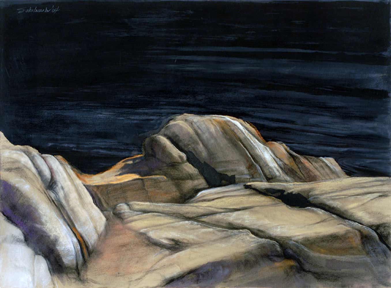 The Path of Night at the Ocean's Edge, mixed media, 22"X30"